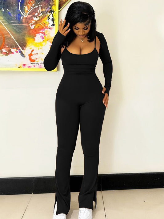 Women's Long-sleeved Shawl Sling Jumpsuit Fashion