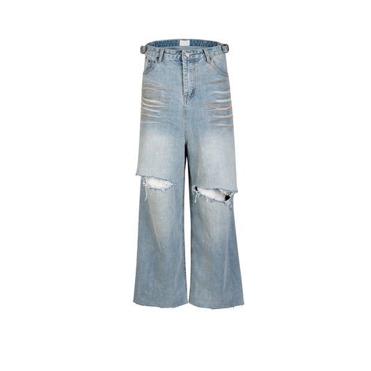 Washed Tassel Damage Wide Leg