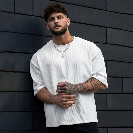 2pcs Set Men V Neck Polo Shirt Lapel Short Sleeve Men's Suit Waffle Style Casual Fashion T-Shirt Summer
