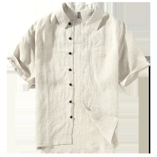 Men's Woven Fine Plaid Linen Short Sleeved Shirt